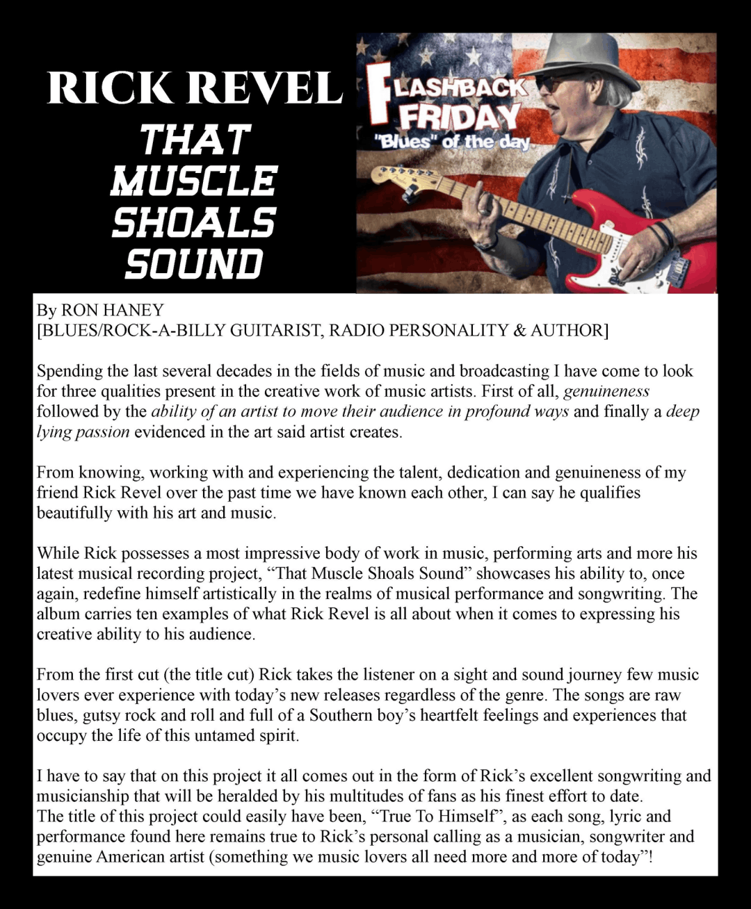 “Rick Revel, is one of the most prolific songwriters to come to Nashville in years.”